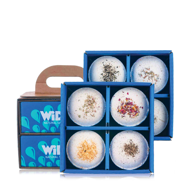 Skin-softening shower melts. Packed with natural essential oil blends to enhance your mood and leave a lasting aroma on your skin. Keep your shower bombs neatly stored & ready to go in our fully recyclable gift box. Swipe across to watch our product guide!